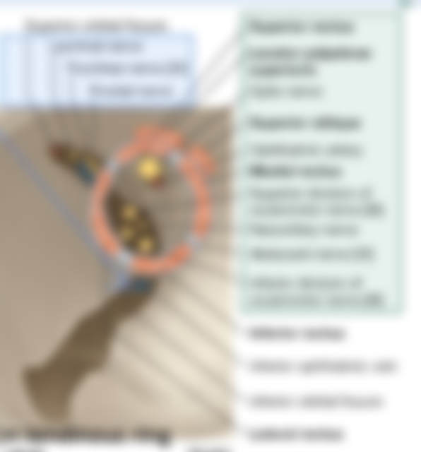 (lacrimal nerve) ⑤滑車神經(trochlear nerve) ⑥外旋神經(abducent nerve)等六條神經中,那些不經由總 腱環(common tendinous ring)內進出眼眶?