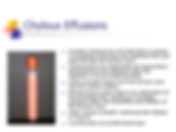由淋巴管滲漏進胸腹腔不透明積液 +三酸甘油脂>100 mg/dl |
