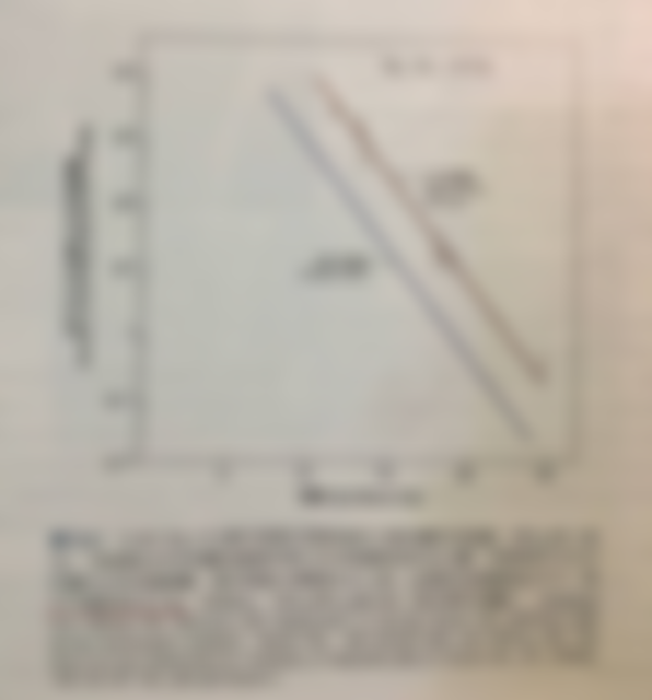 2.下圖X光單次與兩次照射(兩次照射間隔時間為24小時)後的小鼠皮膚存活曲線,其D0值為1.35Gy,二條存活 曲線水平間距為3.5Gy,計算此存活曲線的外插數(n)約為多少?