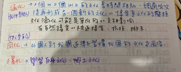 2. 在交流的過程中,某一個團體採用另一個團體全部或部分的文化而形成新的文化,這比較