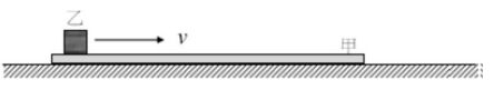 2. 如圖所示,甲為一塊很長的平板,最初靜置於無摩擦的光滑水平面上,而小木塊乙以初速率 v 開始在甲的上面滑行, 最後甲和乙的速率都同為