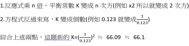 2. 如果反應式 A + B ⇌C的平衡常數為 0.123,則反應式 2C