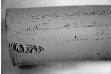 (A)抽真空不良 (B)黏土太軟 (C)練土時間太長 (D)初次使用的新練土機 。