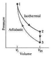 2. In the right figure V₂₃ = 3V₁, and n moles of a diatomic ideal gas are taken through the cycle with the molecules rotating but not oscillating. Which of the following is/are correct?
