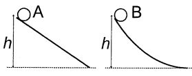 2. Two balls are released from rest and fall along two frictionless slides. Which ball will have higher speed when it arrives at the end of the track?