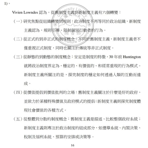 20 新制度論(neo-institutionalism)相較於舊制度論,將研究者的注意力導向動態的制度,下列何者