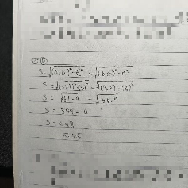 =√((7+2)²-3²)-√((7-2)²-3²)