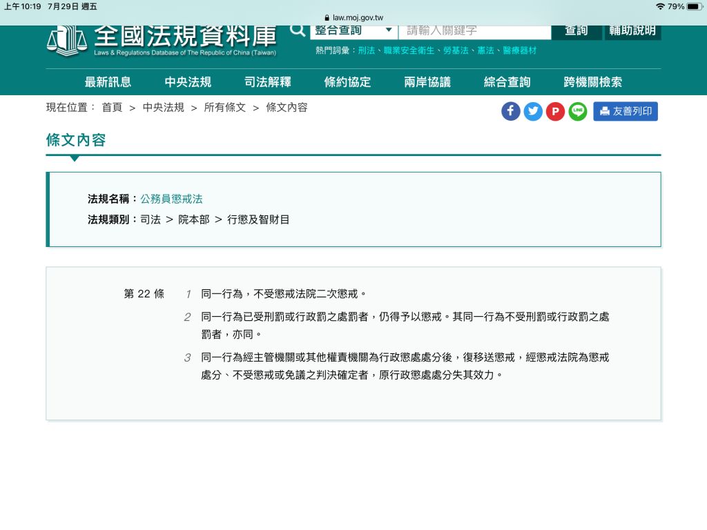 公務員懲戒法第22條有修正,第一項改為不受懲戒法院二次懲戒喔