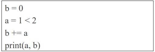 20.下方函式輸出為何? b = 0 a = 1 < 2 b += a print(a, b)