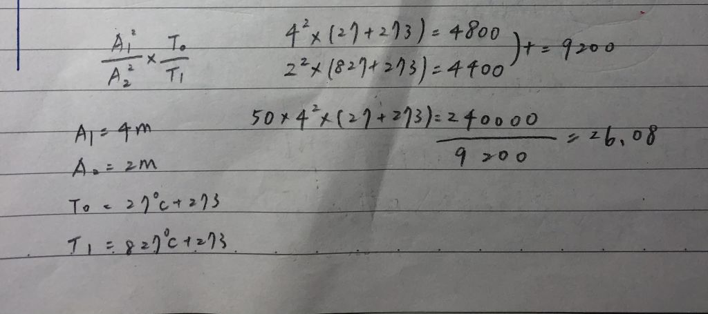 (50-h2)*4平方*(273+27)=h2*2平方*(273+827)