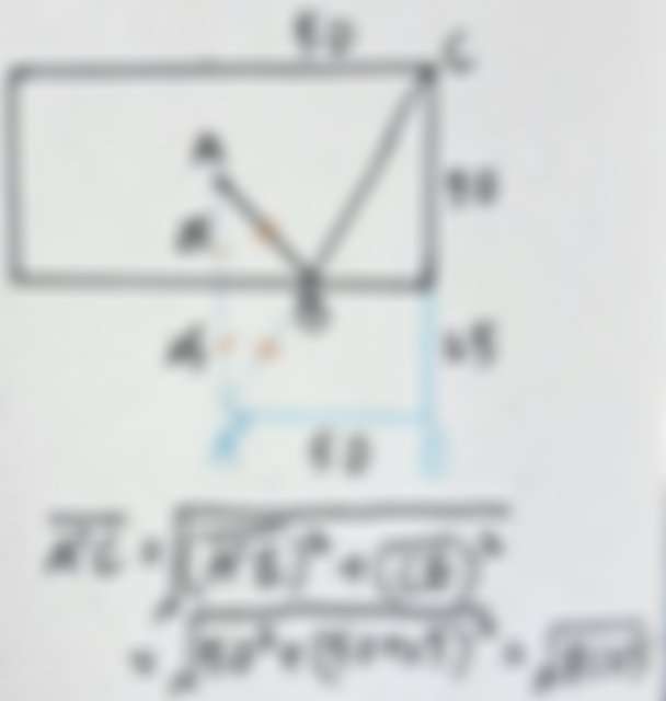 建立座標平面,左下角頂點為(0,0),則A點為(50,25),B點為(200/3,0),C點為(100,50),B點的X座標可取概數67,再利用兩點距離公式求出概數。