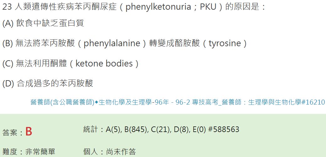 20.苯酮尿症是由於患者無法將苯丙胺酸(phenylalanine)羥化為那一個胺基酸?