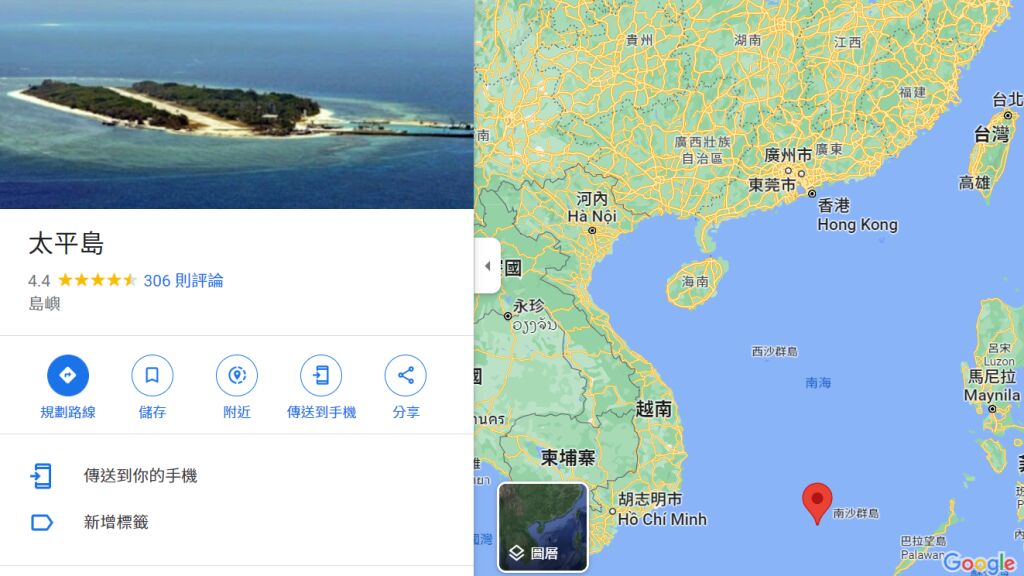 地理資訊 太平島(北緯10 °23'、東經114° 22'),地處南海南沙群島北部中央,鄭和群礁大型環礁上的西北角,居南海西側航道的東邊。 於民國89年由本署接防,行政區隸屬高雄市旗津區所管轄,與高雄港相距約860浬,與東沙島距640浬,是我國轄境最南之處。 南沙群島,是中國南海四大群島中分布最廣、位置最靠南的島群。