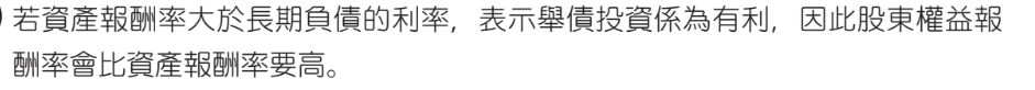 20. 若資產報酬率為 10%,長期負債的利率為 6%,則股東權益報酬會比資產報酬率: