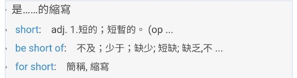 be short for也有縮寫的意思