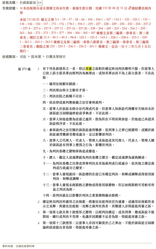 行政訴訟法273條(再審事由)