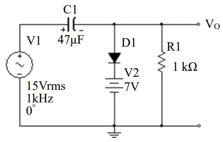 21 如圖所示之電路,結果得到輸出端 VO 為 0 V,可能發生的問題為何?(A) D1 開路 (B) C1 開路 (C) C1 短路 (D) R1 開路