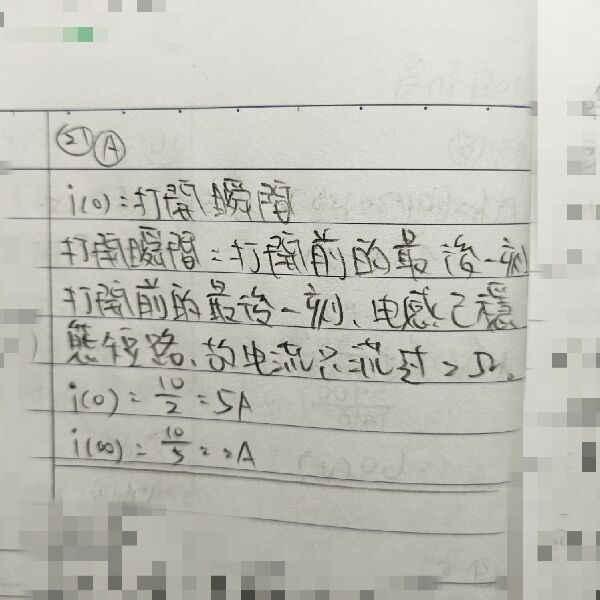 21 如圖示之電路,開關於 t = 0 時打開,求 i(0) 及 i(∞)分別為何?