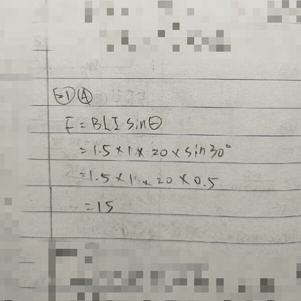 21 置於磁通密度為 1.5 Wb/m2之均勻磁場內的 1 公尺長導線載有 20 A 電流,其運動方向與磁場成 30°角,則此導線所受之力為何?