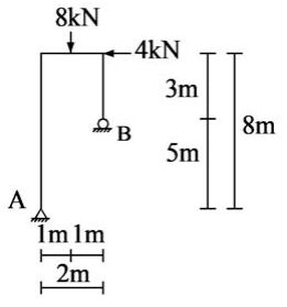 21. 如右圖所示,一承受荷重的構架,試求支承A的垂直反力為何?(A) 8 kN(B) 12 kN(C) 16 kN(D) 20 kN