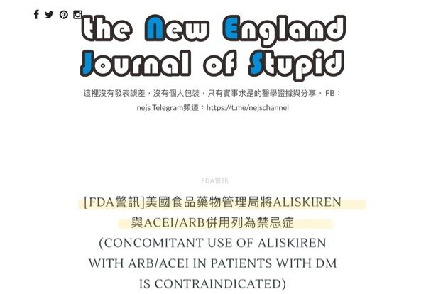 Aliskiren 和 valsartan 併用可能加強腎臟毒性