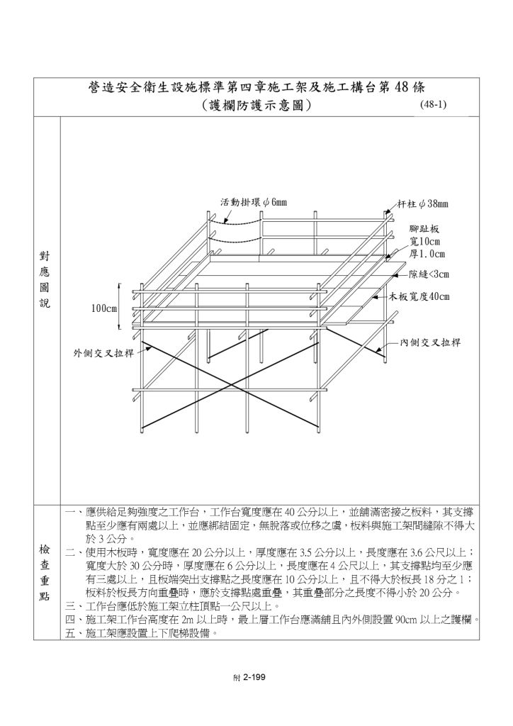 22 依據營造安全衛生設施標準規定,施工 架工作臺應低於施工架立柱頂點多少 公分以上?