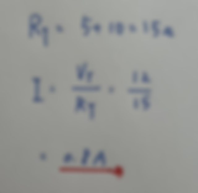 22 一個5Ω和10Ω的電阻串聯於12V電池,其總電流為:
