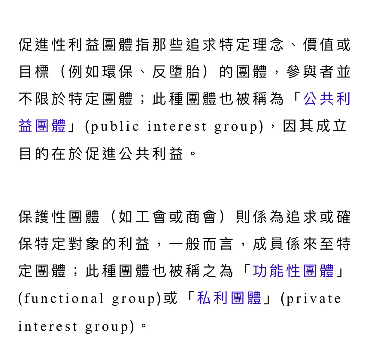 (D)保護型利益團體又稱為功能性團體,聯想到宮保雞丁
