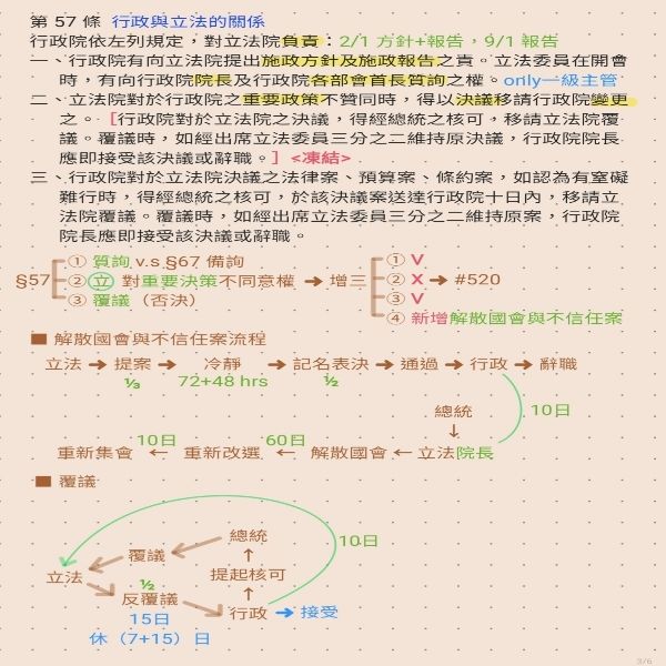 (B) 行政院對於立法院決議之法律案、預算案、條約案,如認為有窒礙難行時,得經總統之 核可,於該決議案送達行政院 10 日內,移請立法院覆議