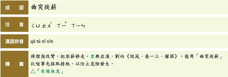 (D)地震是臺灣時常發生的災害,政府與民眾都應該曲突徙薪,防患於未然。