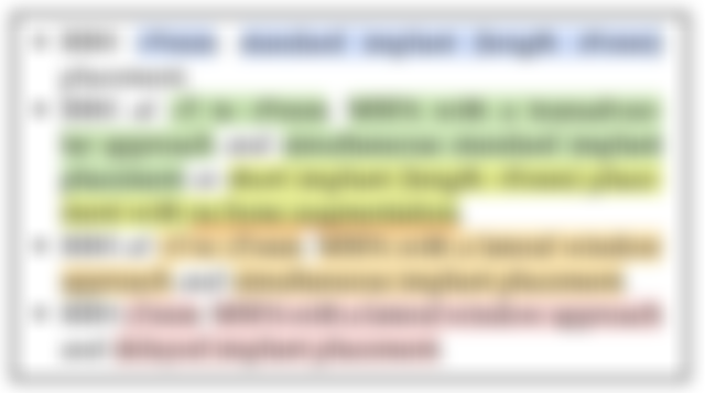 (B)底部骨頭的高度為3 mm建議使用單一階段,增高術與植體同時置放