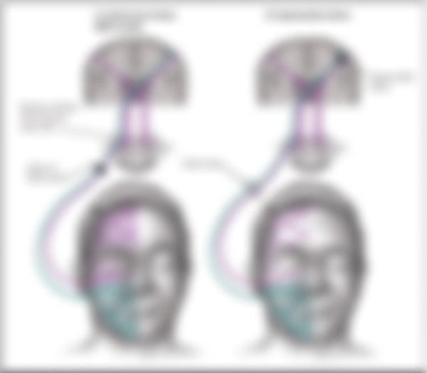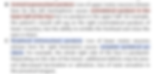 22.若病人因左側上運動神經元(upper motor neuron)受損導致中樞型顏面神經麻痺,可能出現下列何種症狀?