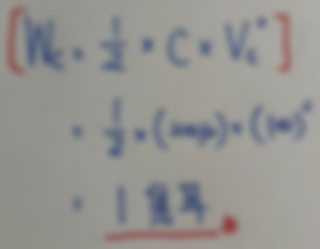 22.電容量為 200μF 的電容器,其兩端電壓差穩定於 100V 時,該電容器所儲存的能量為何?