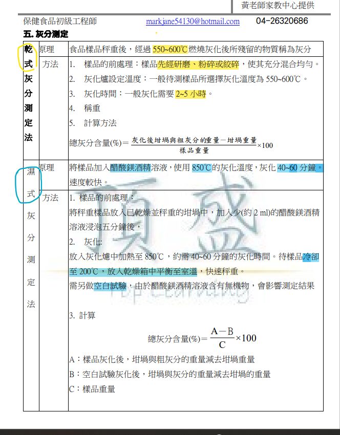(D)以少量硝酸將灰分沉澱物溶解,加硝酸溶液有黃色沉澱生成,表示有磷存在