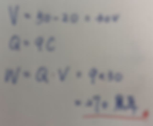 22. 某一帶電量為9庫侖正電荷,從電位20V處移到50V處,試求此電荷作工多少焦耳?