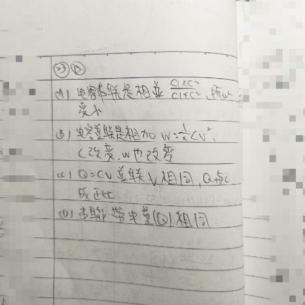 (B)兩電容並聯時,各電容儲存的電能一樣多