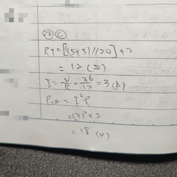 23 如圖所示電阻電路,2 歐姆電阻之消耗功率為多少瓦特?