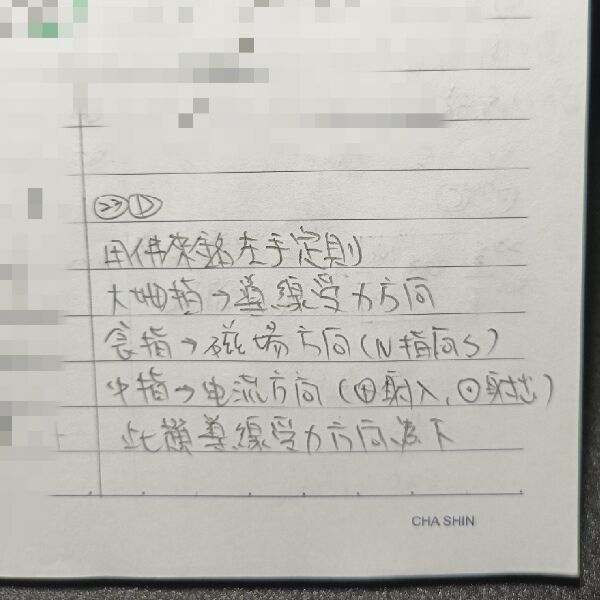 佛來銘左手定則可得知受力方向(F)朝下
