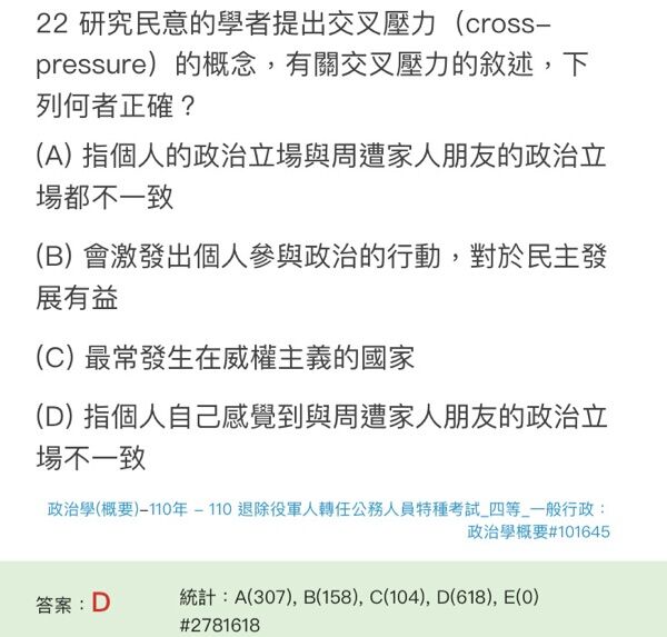 110年 - 110 退除役軍人轉任公務人員特種考試_四等_一般行政:政治學概要#101645 第22題