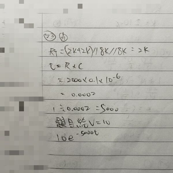 23 如圖所示之電路,V(0) = 10 V,求所有 t > 0之 V(t)值為何?