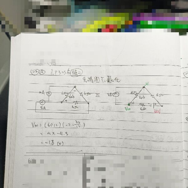 而流過6Ω電阻的電流為 5 * 6 / 18 = 5 / 3 A,方向為b點流向a點。