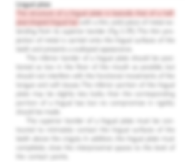 (C)舌側板本身並不當做間接固位體(indirect retainer)使用,若需要時,則須包含明確的鈎靠設計