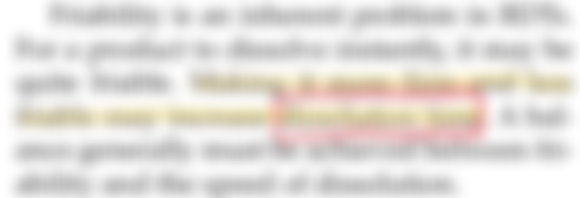 23.脆度(friability)是速溶錠(rapidly dissolving tablets, RDTs)的先天問題,試問降低其脆度 通常相對最會影響速溶錠片的何種物性?