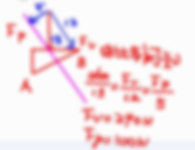 23. 一力 F 作用於一剛體三角形零件上,此零件與一錐形面緊密貼合,如圖 ( 五 ) 所示。如果 將此作用力F=260N分解成兩個分量,一分量Fp與AB線方向平行,另一分量Fv與AB線 方向垂直,則下列敘述何者為正確?