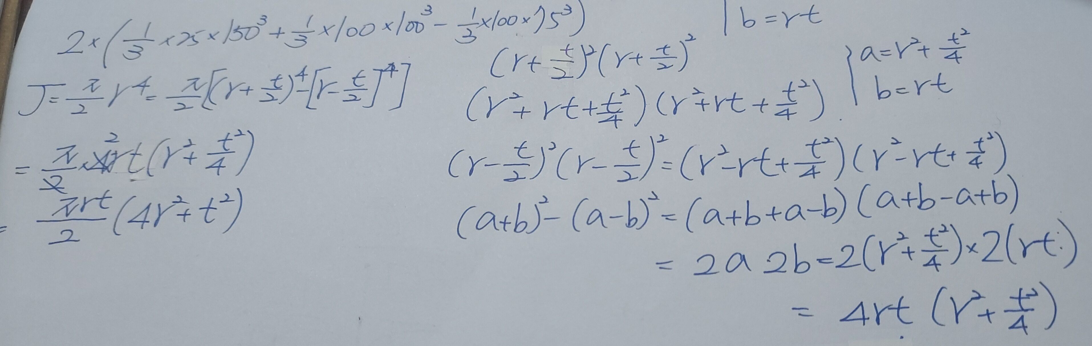 23. 如右圖所示,一圓管剖面,已知圓管厚度為t,圓管厚度中心到圓管中心之半徑為r,則該圓管的斷面極慣性矩為何?