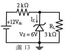 23. 如圖13之 =3kΩ,試計算流經齊納二極體之 電流