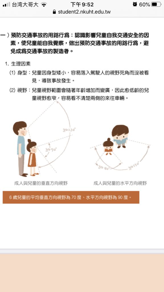 (C)6歲幼兒的平均垂直方向視野為90度,水平方向視野為70度。