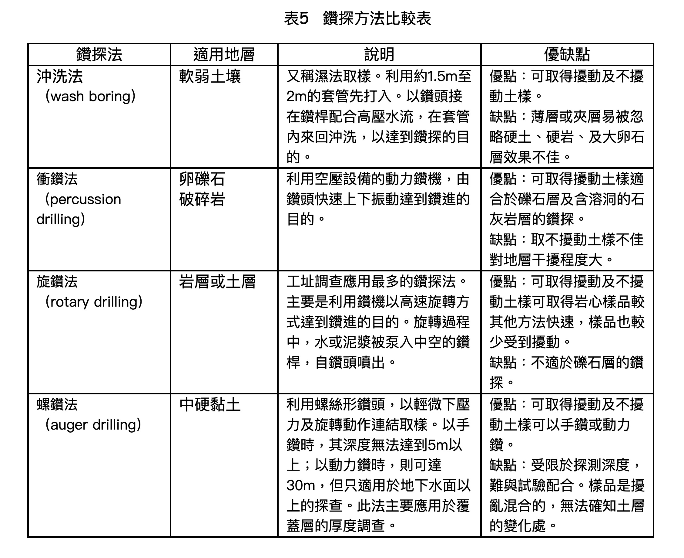 24 下列鑽探方法,哪一類只是適用於地下水面 以上的探查?
