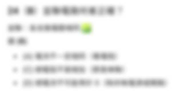 5 某蓄電池標示為12V、60安培小時,若接2瓦特的燈泡,最多可使用多久? (A) 6小時 (B) 36小時 (C) 360小時 (D) 720小時