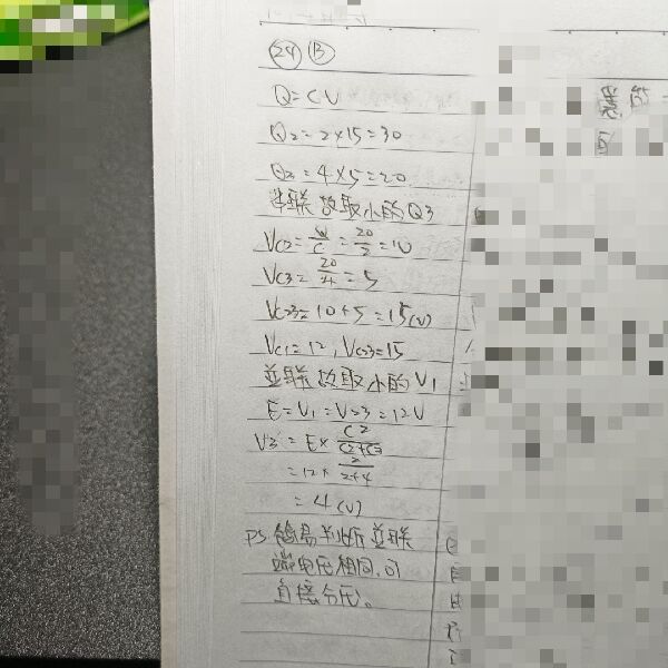 C=Q/V V=Q/C 20C除總電容10/3 等於6伏特